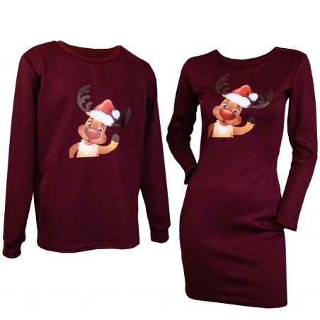 Set cuplu, contine o rochie dama + o bluza barbat, cu imprimeu ren, ideal in preajma sarbatorilor de iarna dar nu numai.