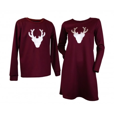Set cuplu, contine o rochie dama + o bluza barbat, cu imprimeu ren, ideal in preajma sarbatorilor de iarna dar nu numai.
