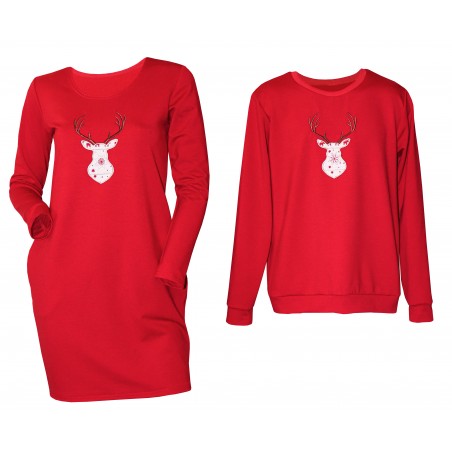 - ren brodat in tesatura cu insertie de bumbac imprimat cu motive iarna/ Craciun