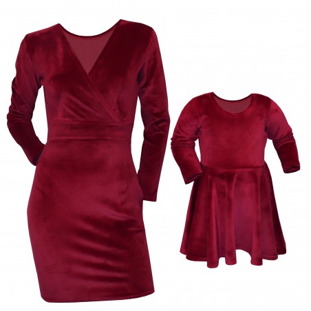 Set mama/fiica, confectionate din catifea elastica , soft, de culoare grena