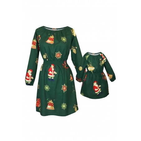 Rochii confectionate din bumbac, plin, verde cu imprimeu Craciun
